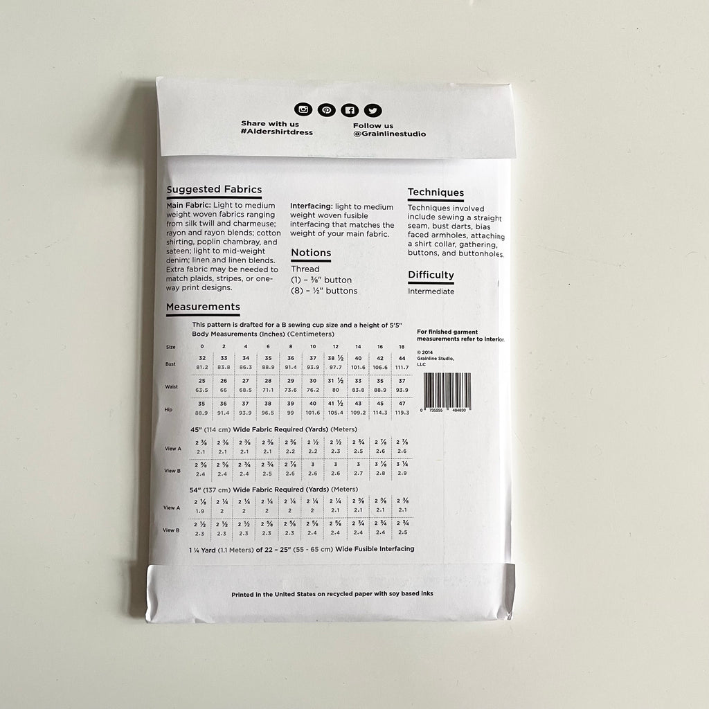 Alder is a loosely fitted sleeveless shirtdress with two options. View A falls into an A-Line at the waist and features a curved hem, bust darts, and two breast pockets. View B features the same bodice as View A, but with a gathered skirt at the sides and back of the garment resulting in an incredibly flattering and fun silhouette.