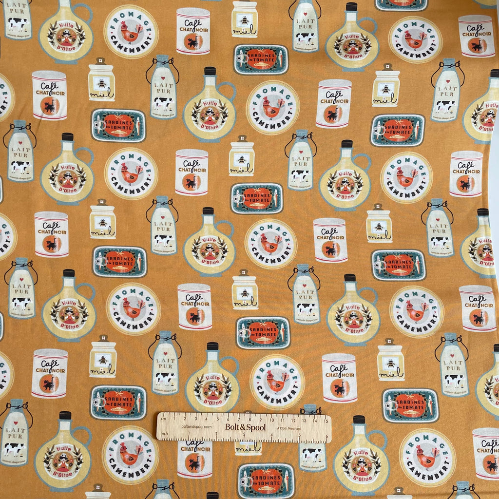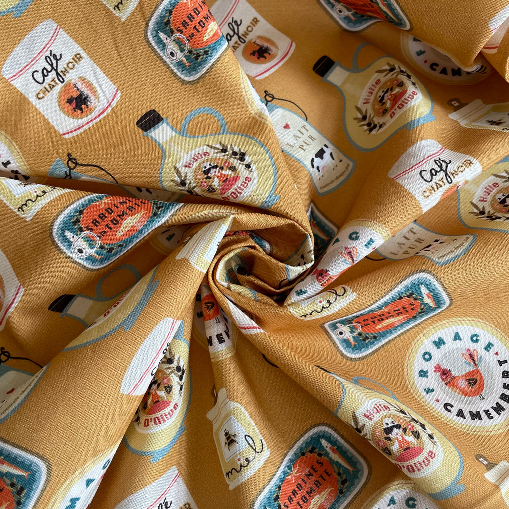 Embark on a picturesque Parisian escapade with Bee Brown's Bon Voyage, a charming tribute to the art de vivre. Whimsical illustrations whisk you through cobbled streets lined with chic cafes and patisseries, against a canvas of blooming flora and vintage postage stamps. Celebrating the romantic allure of autumn in France, capturing the essence of a leisurely stroll through the heart of Paris, baguette and bouquet in hand. Quilting-weight cotton, well-suited for shirts, skirts, dresses, aprons, bags, pillows and, of course, quilts. Based out of the UK.