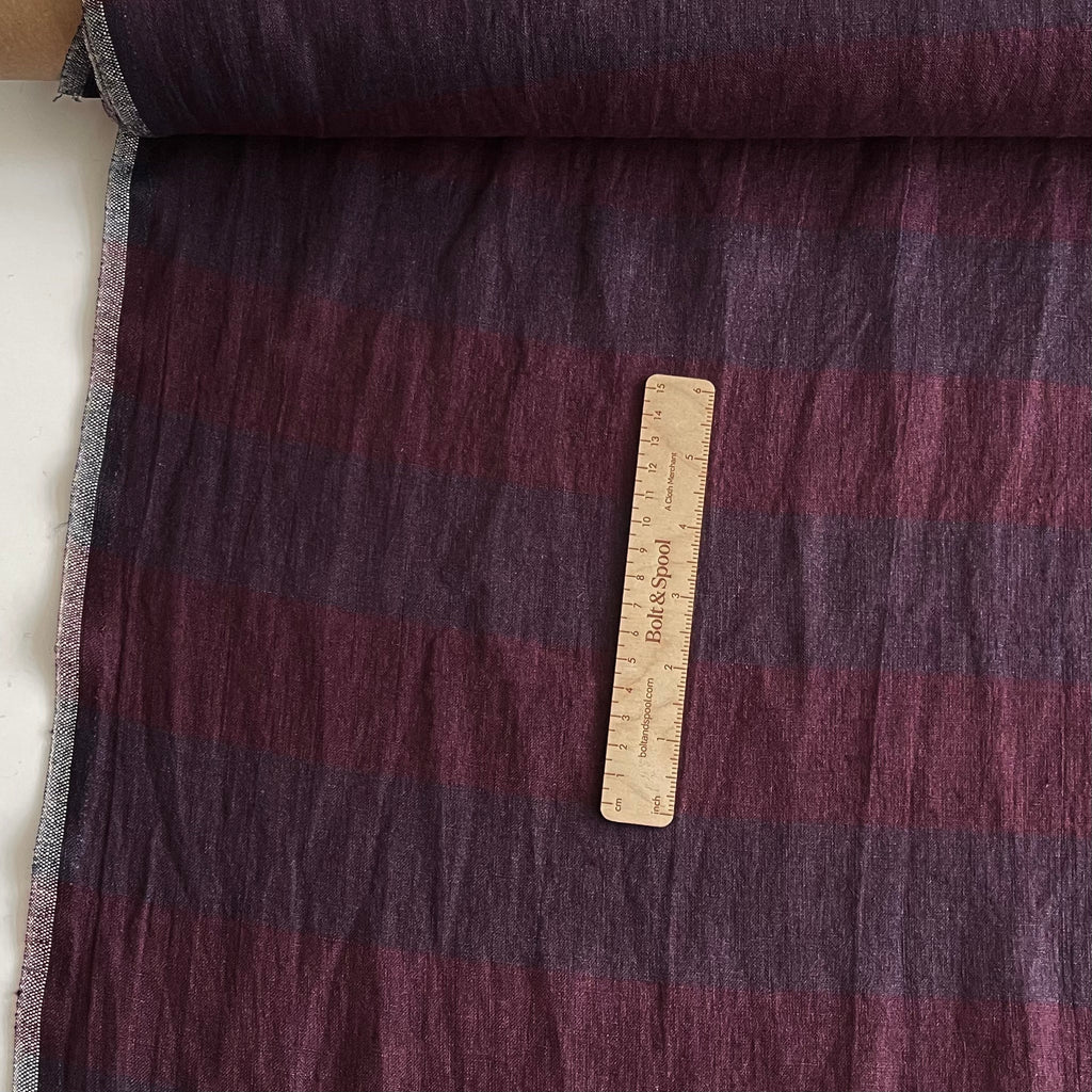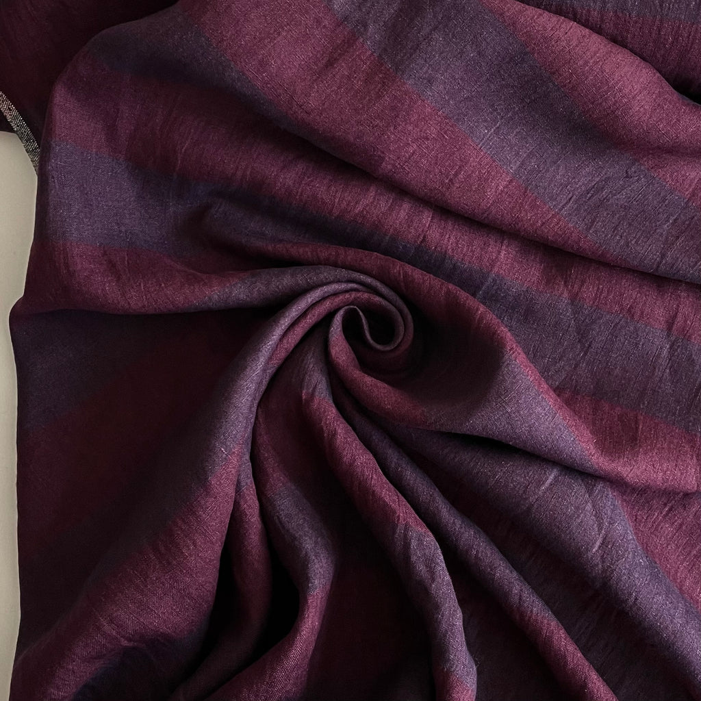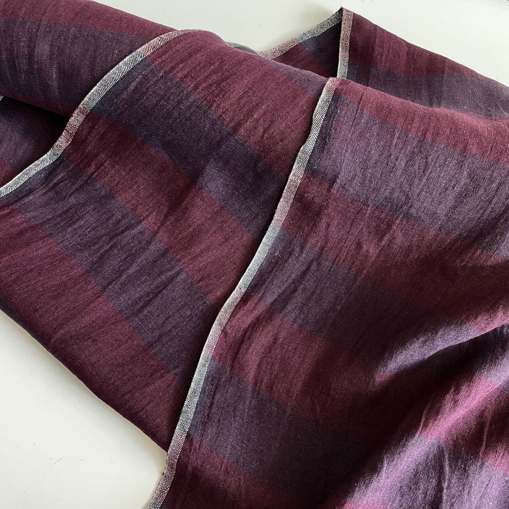 A rich autumnal stripe in deep plum and navy. European laundered linen, tumbled at the mill for softness. This dress weight linen is our go to linen for all dress making and also works well for lighter curtains for a casual less refined look.