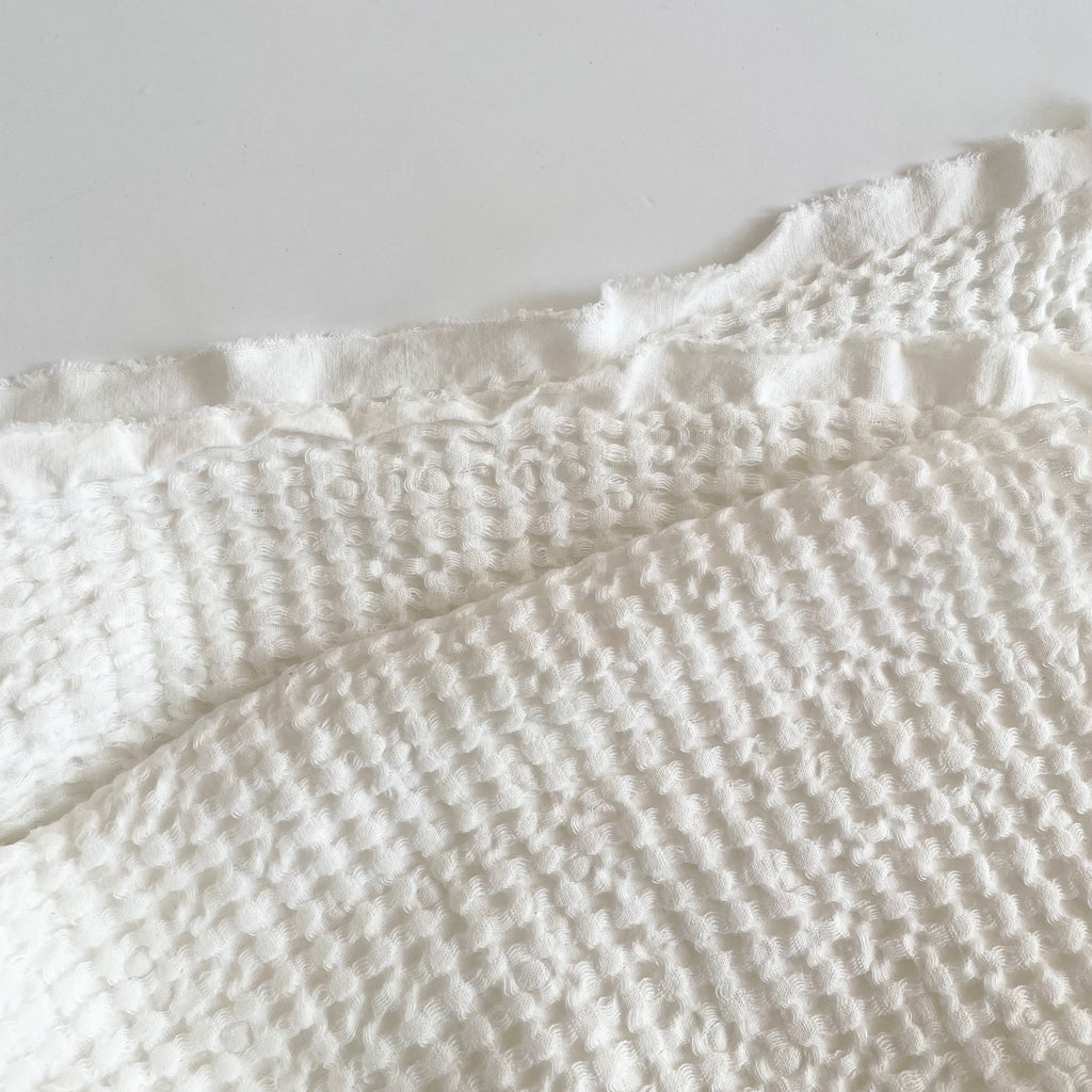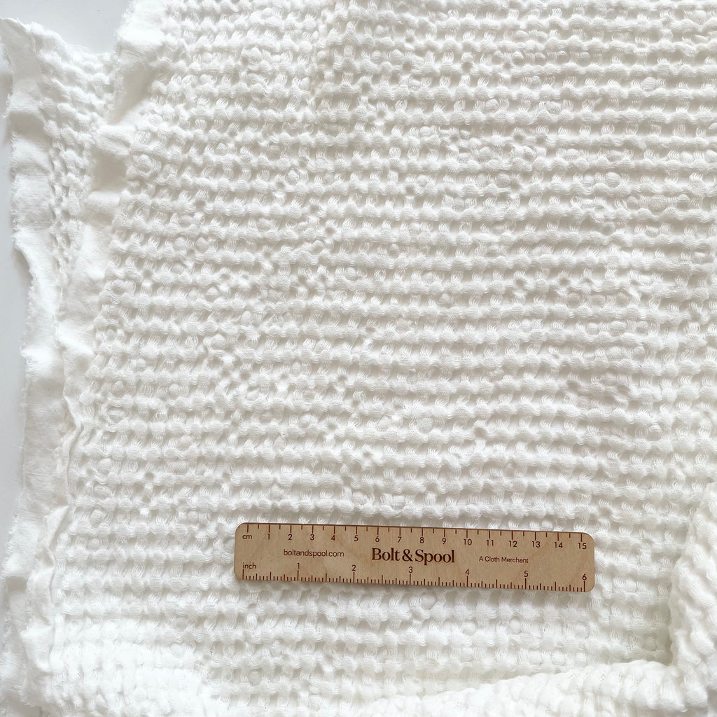 Plush, cozy waffle weave fabric, perfect for the afterglow of the bed or bath. Make it into robes, blankets, towels, or cozy loungewear like woven sweatshirts.