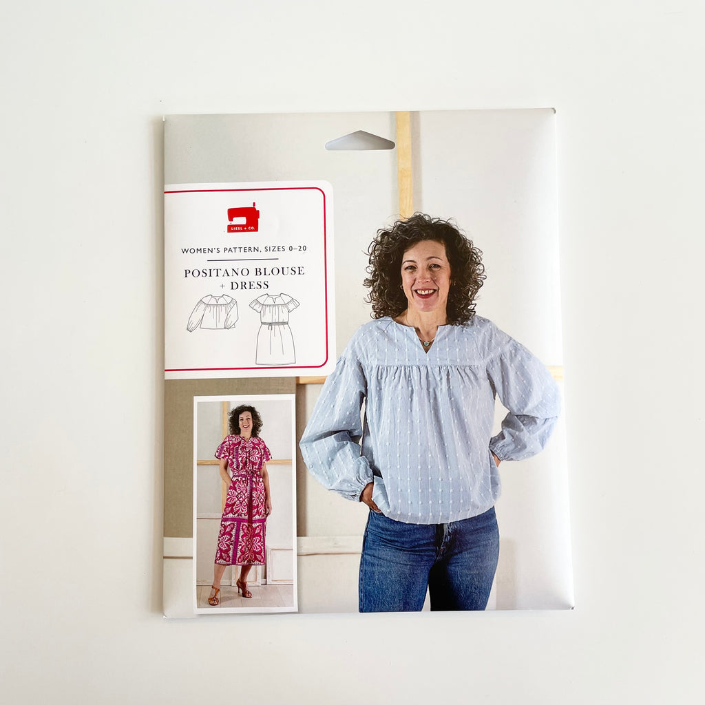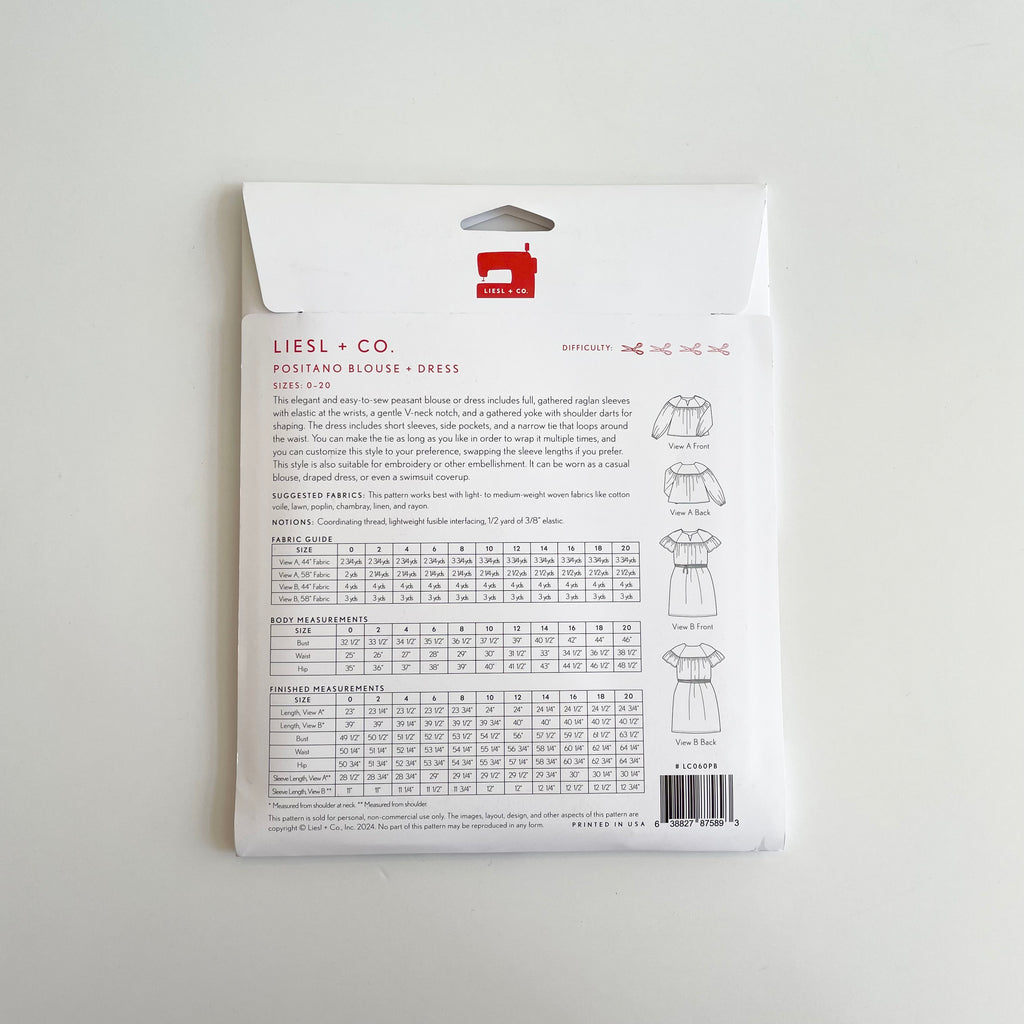 This elegant and easy-to-sew peasant blouse or dress includes full, gathered raglan sleeves with elastic at the wrists, a gentle V-neck notch, and a gathered yoke with shoulder darts for shaping. The dress includes short sleeves, side pockets, and a narrow tie that loops around the waist. You can make the tie as long as you like in order to wrap it mutliple times, and you can customize this style to your preference, swapping the sleeve lengths if you prefer. This style is also suitable for embroidery or other embellishment. It can be worn as a casual blouse, draped dress, or even a swimsuit coverup.