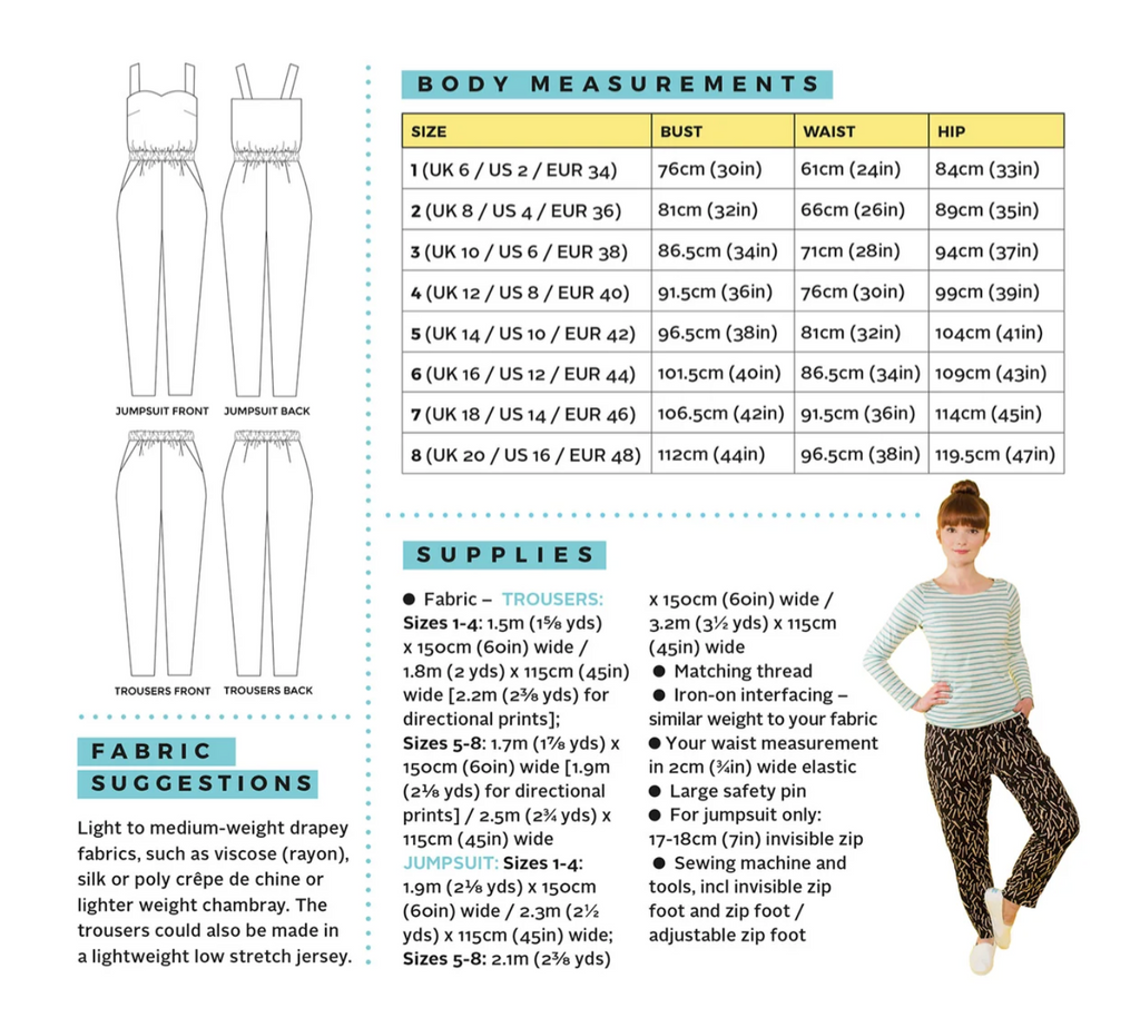 Make your own super comfy Marigold jumpsuit or trousers with this easy-to-use sewing pattern.