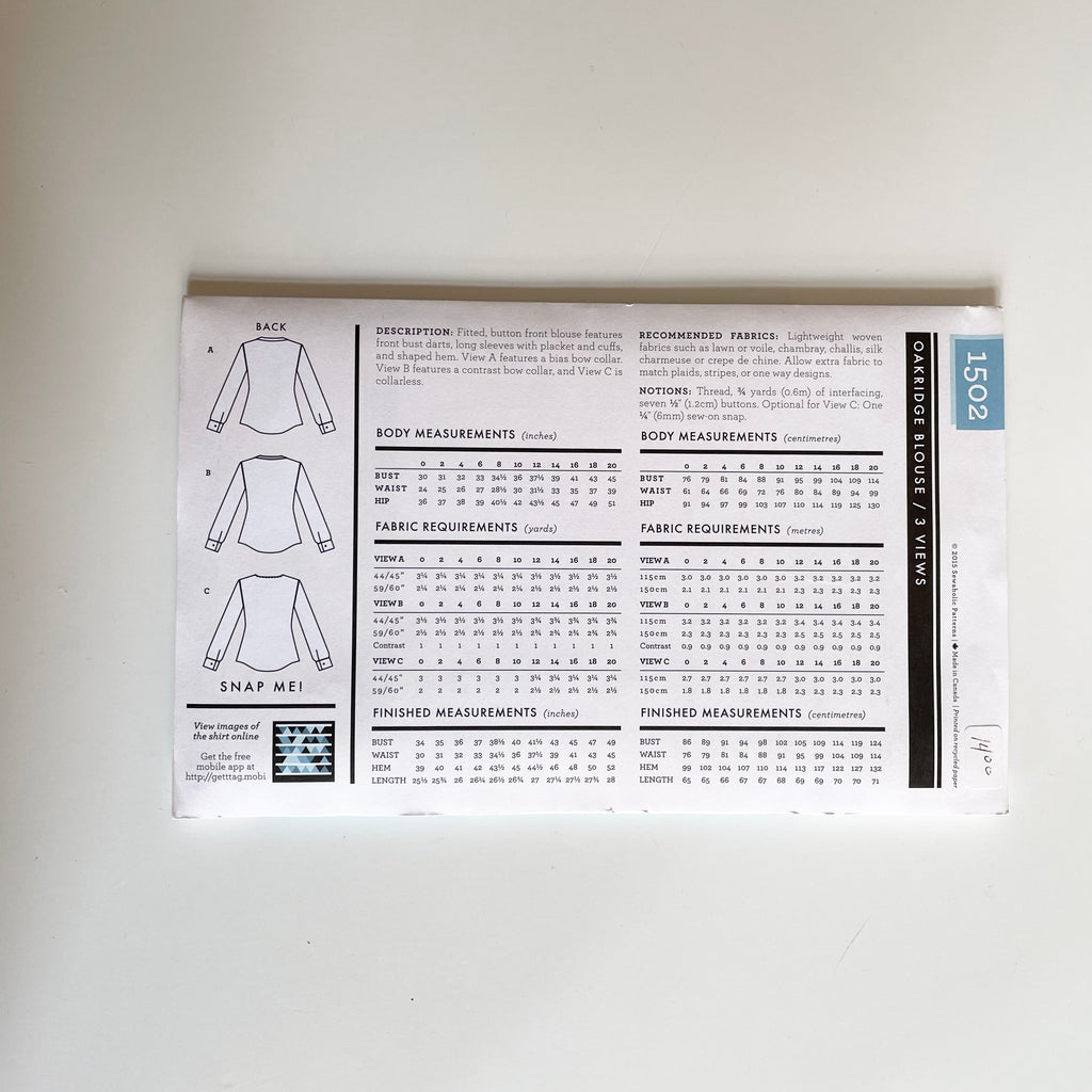 Sewaholic Patterns : Oakridge Blouse