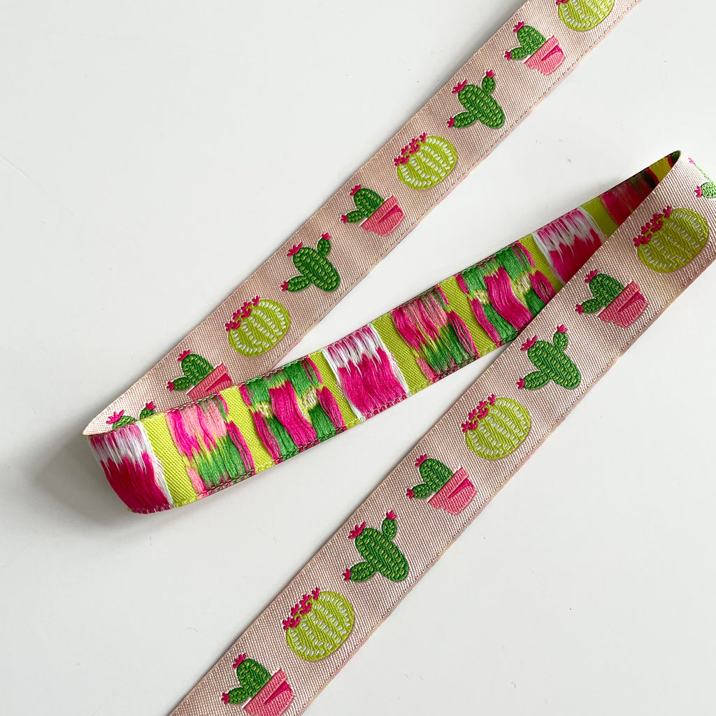 Jacquard ribbon, great for making belts, headbands, cuff bracelets, pet collars and leashes; and for accenting bags, pillows, and quilts. Ribbon adds a nice touch to clothing as well -- on waistbands, along button bands, as a trim for sleeves or cuffs, and along collars and hems.