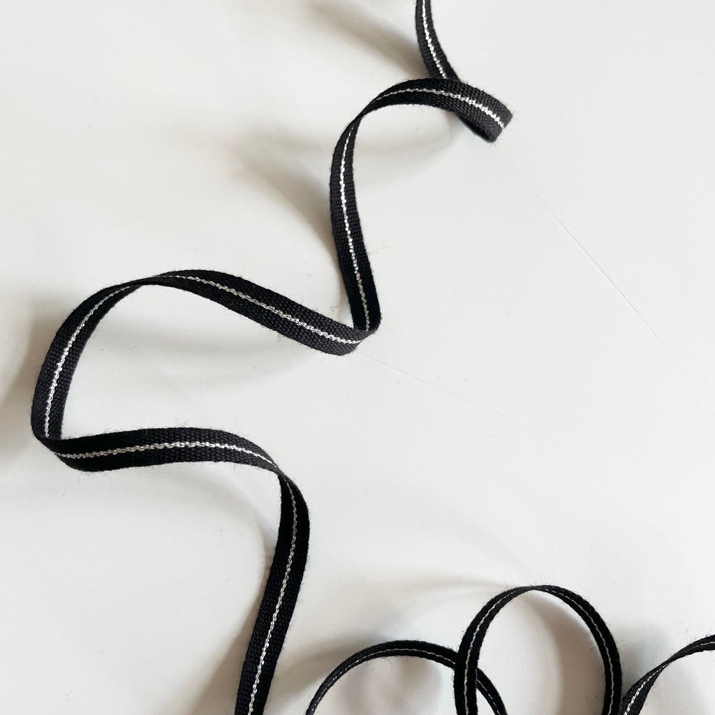 Studio Carta : Narrow Tight Weave Metallic Line Cotton Ribbon - Black / Silver