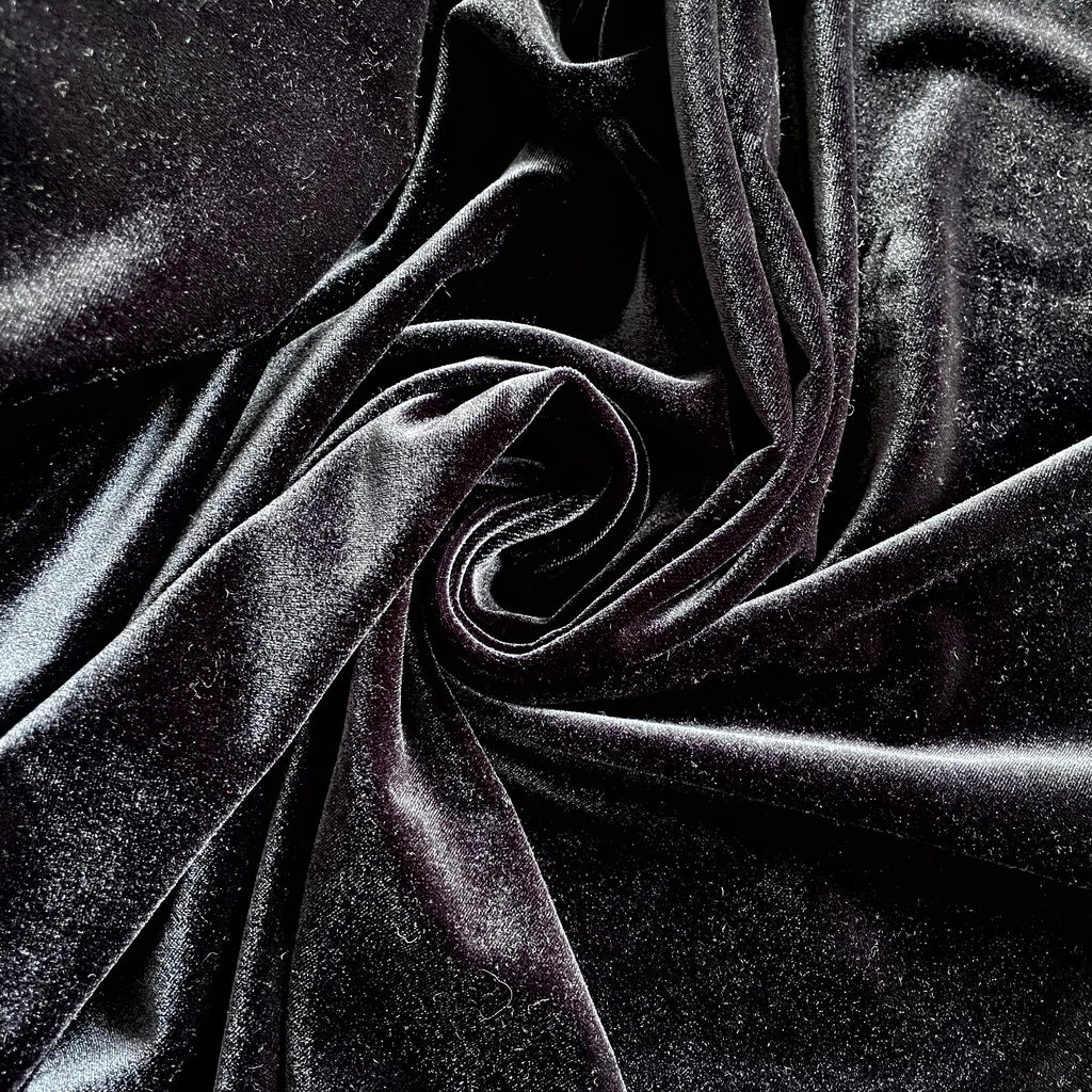 Lusciously soft and lightweight stretch velvet. Perfect for stretchy tops, dresses, skirts, and funky leggings.
