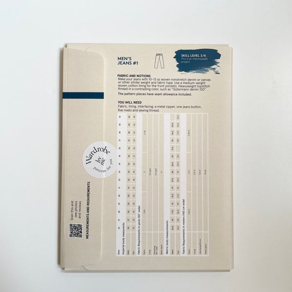 make your jeans with 10-13 oz woven nonstretch denim or canvas or other similar weight and fabric type. Use a medium weight woven cotton lining for the front pockets.
